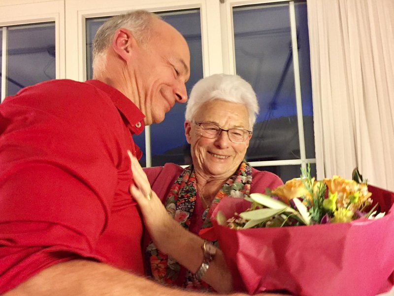 Auch bei unseren indirekten Mitarbeitern und Helfern bedankten wir uns mit einem Blumenstrauss. Im Bild zu sehen ist Rita Graf; die Mutter des Geschäfts sozusagen.
